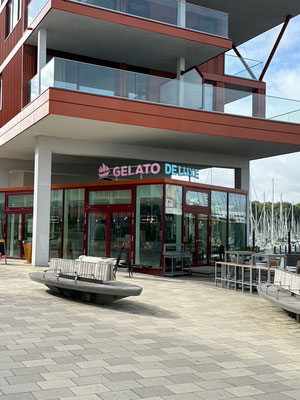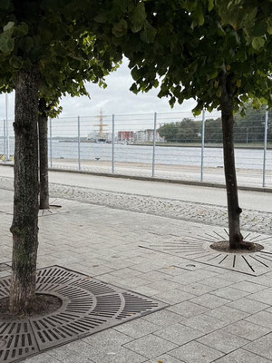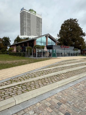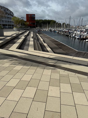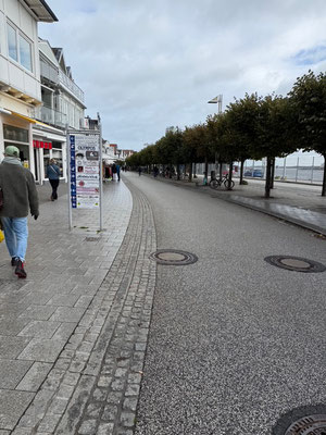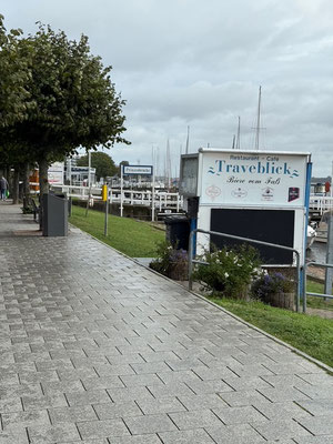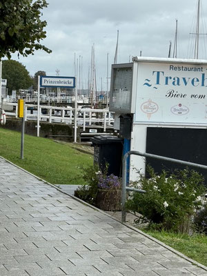 Der Weg von der Priwallfähre Richtung Maritim Hotel bis zum Niederegger dann rechts, die Prinzenbrücke