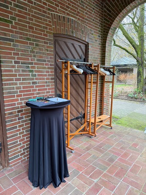 Beispiel: Gestühl , Notenständer mit Beleuchtung in der Tenne in Ammersbek. Leihpreis für Trauerfeier 60.--€