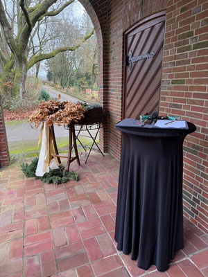 Im Preis ist die Ausrichtung einer Trauerfeier in Hamburg und der Region , ab 1oo5.--€ (ca. 30 Minuten, incl. Vorbereitung, Dekoration und Rückbau incl. 3 Mitarbeitern) in einer Friedhofskapelle einer Feierhalle, Kirche* (*meist ohne Gebühr) oder bei uns in der Tenne`*