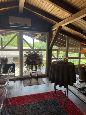 * Geborgene Atmosphäre: Unsere Tenne, eingebettet in ein ländliches Ambiente, bietet Ihnen einen klimatisierten, großzügigen Hauptraum. Die warme, sorgfältig gestaltete Einrichtung bildet einen bewussten Kontrast zur oft kühlen Funktionalität städtischer Feierhallen. Hier finden bis zu 80–100 Gäste in einem geschützten Umfeld Platz.