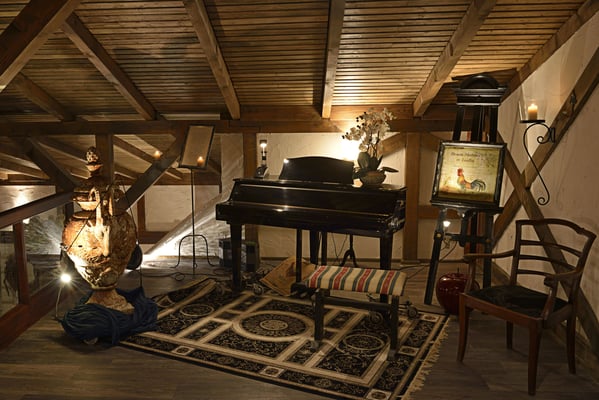 In den privat gestaltet etwas opulent eingerichteten Räumen steht nicht nur ein kleiner Konzertflügel, es könnten auch Filme und Fotos gezeigt werden.