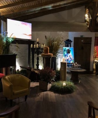 Ausführung einer Trauerfeier mit Raumnutzung unserer privaten Tenne. Der private Gastraum befindet sich im 1. Stock.