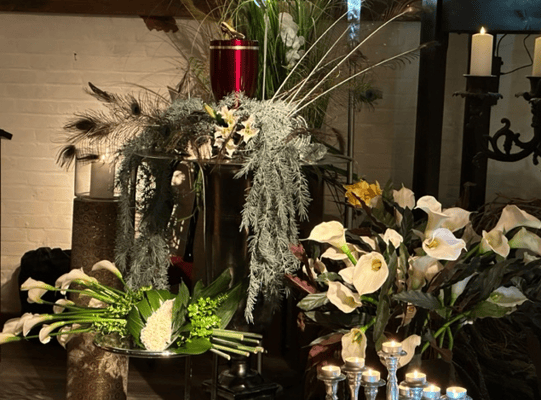 Dekorationen Sarg und Urne, Event in der Tenne